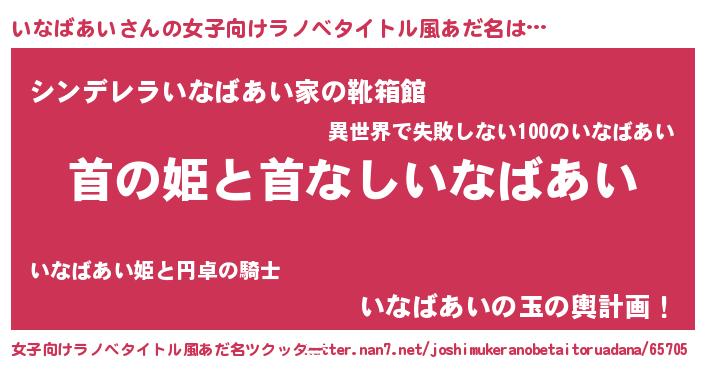 | 胡散臭い通販商品みたいなあだ名 | 『絶対に幸福をもたらす健康食品…その名も「いなばあい」』 |