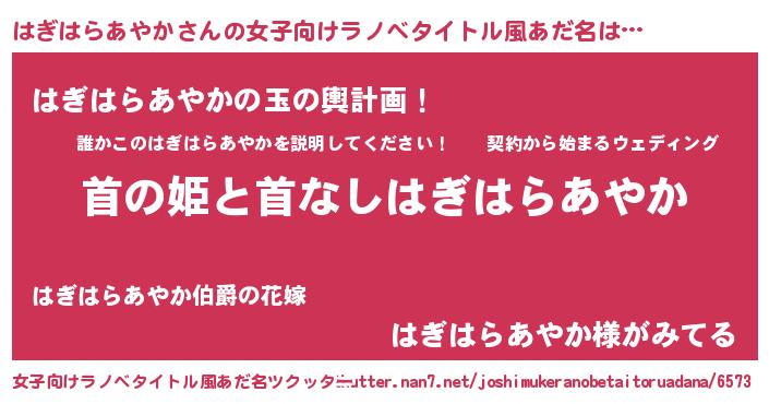 | 胡散臭い通販商品みたいなあだ名 | 『信頼と実績のサプリメント…その名も「はぎはらあやか」』 |