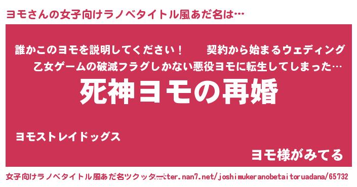 | 男性向けラノベタイトル風あだ名 | 『ノーゲーム・ノーヨモ』 |