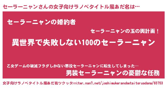 | 男性向けラノベタイトル風あだ名 | 『セーラーニャンという概念が存在しない退屈な世界 』 |