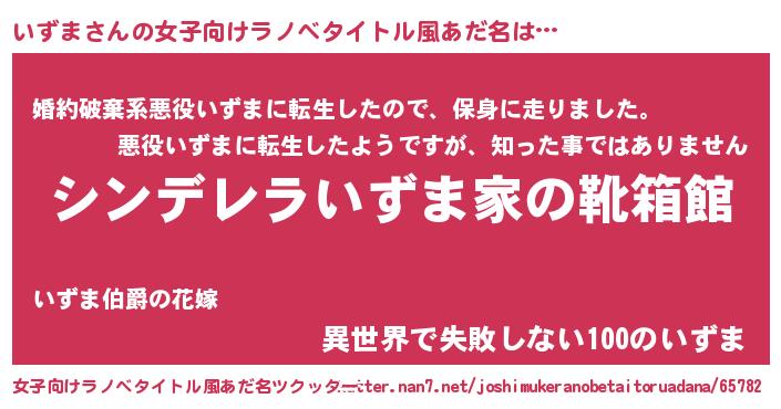 | 胡散臭い通販商品みたいなあだ名 | 『来世でも幸せになれる健康食品…その名も「いずま」』 |