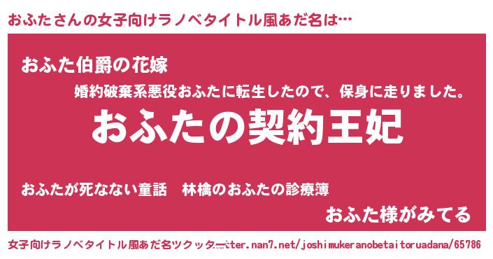 | 男性向けラノベタイトル風あだ名 | 『おふたという概念が存在しない退屈な世界 』 |