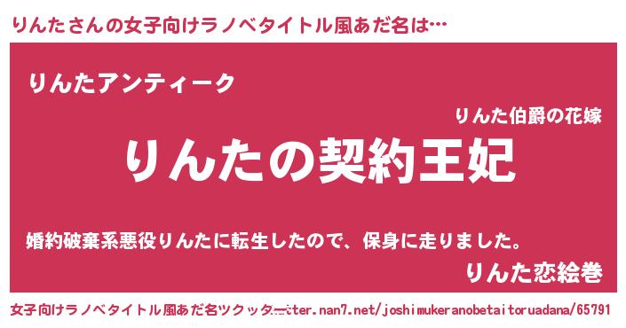 | 胡散臭い通販商品みたいなあだ名 | 『来世でも幸せになれる健康食品…その名も「りんた」』 |