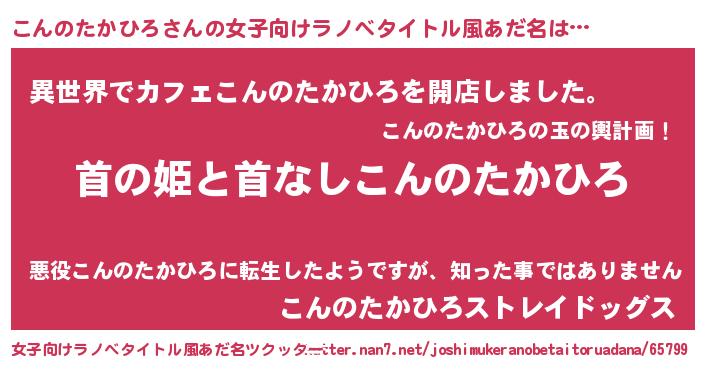 | 男性向けラノベタイトル風あだ名 | 『はたらくこんのたかひろさま!』 |