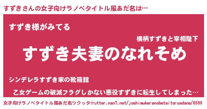 | 男性向けラノベタイトル風あだ名 | 『おまえをオタクにしてやるから、俺をすずきにしてくれ! 』 |