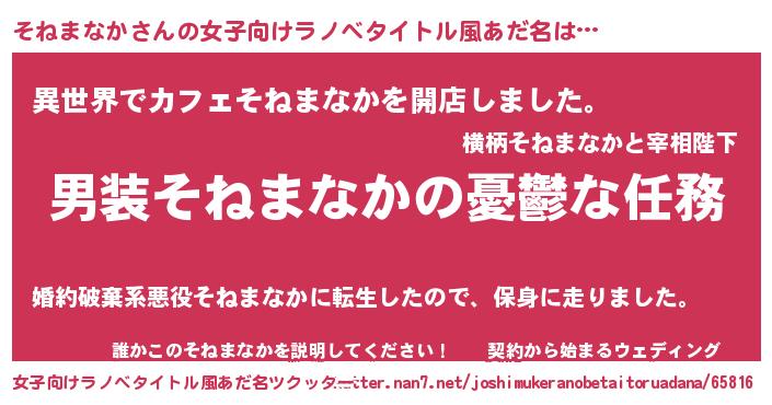 | 胡散臭い通販商品みたいなあだ名 | 『来世でも幸せになれる水素水…その名も「そねまなか」』 |