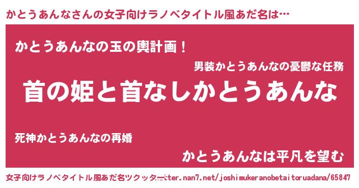 | 男性向けラノベタイトル風あだ名 | 『はたらくかとうあんなさま!』 |