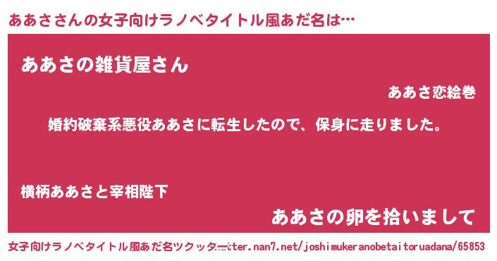 | 料理風あだ名 | 『ああさごはん』 |