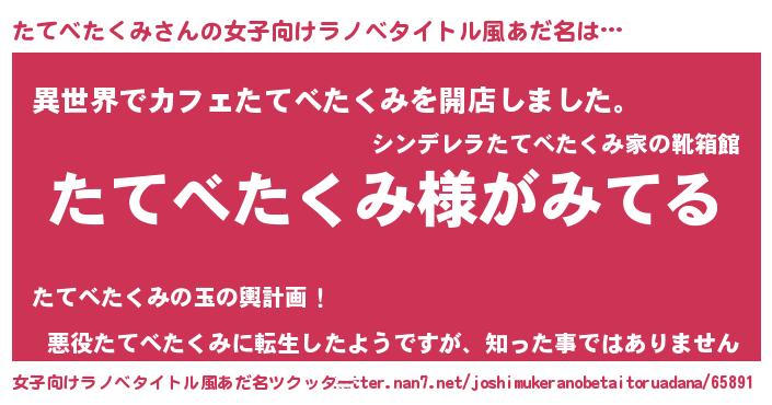 | 意味不明あだ名 | 『とにかく怪しいたてべたくみ』 |