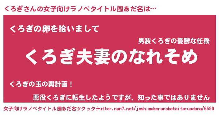| ヘコむあだ名 | 『くろを』『くろもー』『なまこ酢』 |
