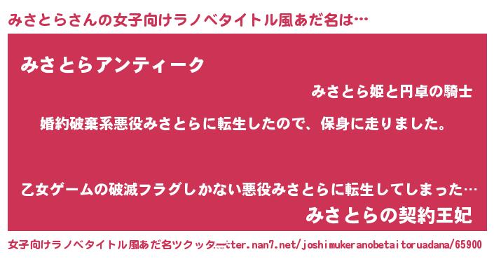 | 胡散臭い通販商品みたいなあだ名 | 『ガンによく効く高麗人参…その名も「みさとら」』 |
