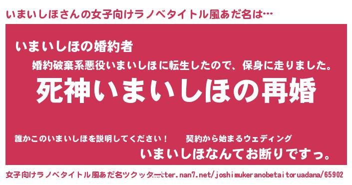| 男性向けラノベタイトル風あだ名 | 『ノーゲーム・ノーイマイシホ』 |