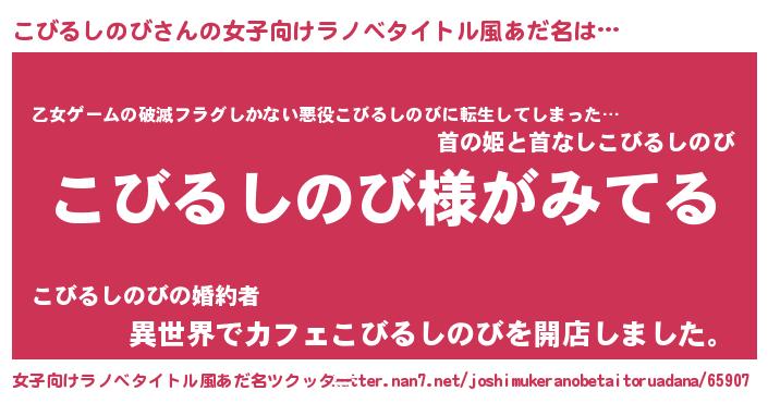| 男性向けラノベタイトル風あだ名 | 『こびるしのびの嫁は女の子じゃないと思った?』 |