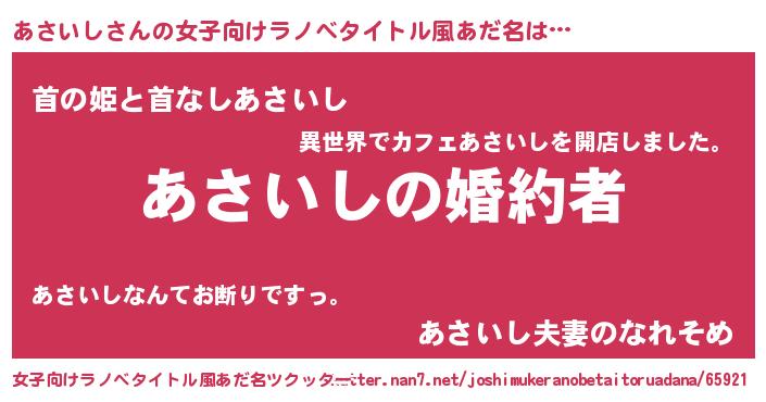 | 胡散臭い通販商品みたいなあだ名 | 『運命の人と巡り会える高級そうな壺…その名も「あさいし」』 |