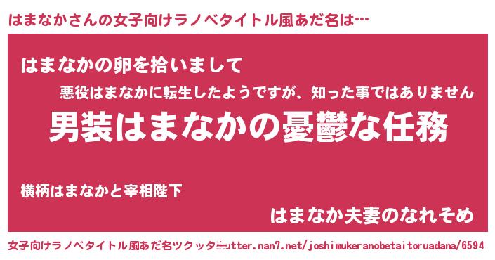 | 男性向けラノベタイトル風あだ名 | 『冴えないはまなかの育てかた』 |