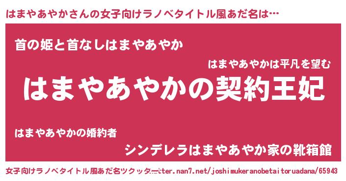 | 意味不明あだ名 | 『永久保存はまやあやか』 |