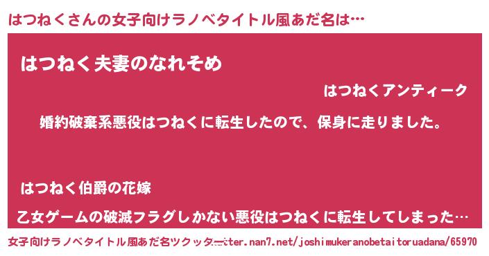 | 男性向けラノベタイトル風あだ名 | 『ハツネクスレイヤー』 |
