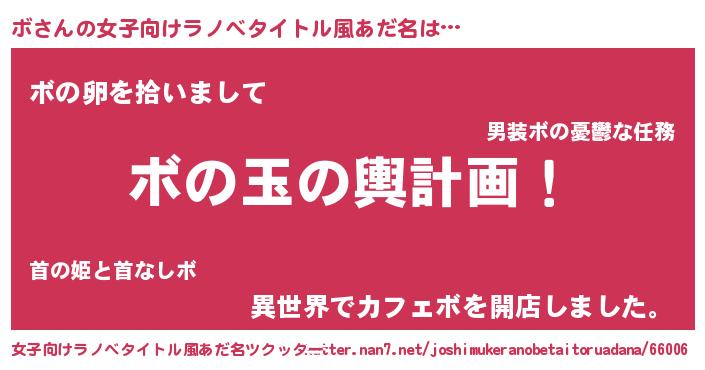 | 男性向けラノベタイトル風あだ名 | 『ボ~年齢イコール彼女いない歴の魔法使い~』 |