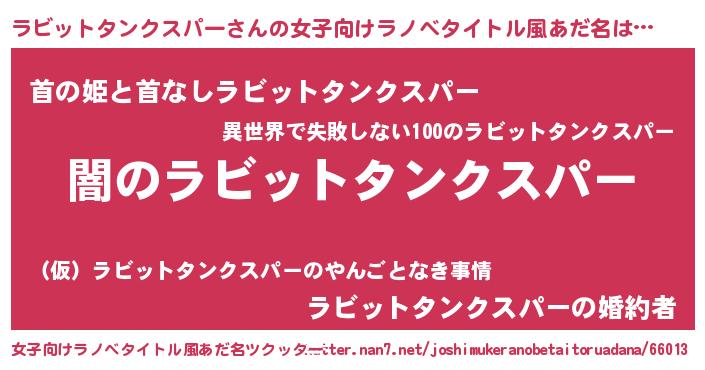 | ヒーロー風カッコイイあだ名 | 『最強戦士ラビットタンクスパー』 |