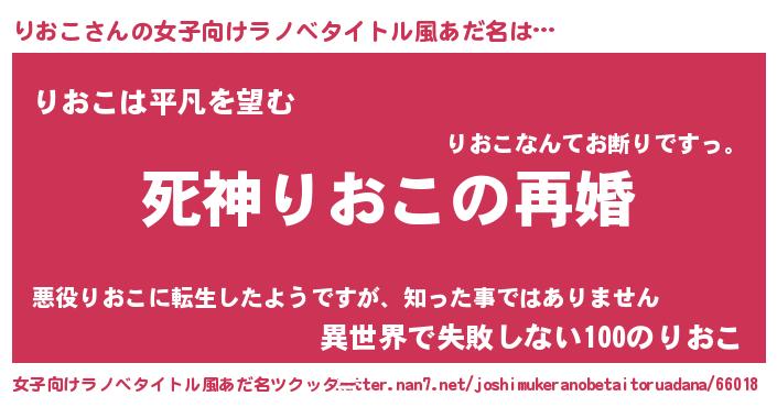 | 男性向けラノベタイトル風あだ名 | 『ノーゲーム・ノーリオコ』 |
