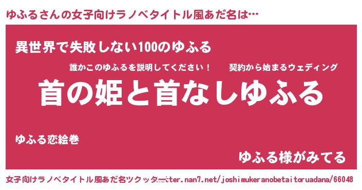 | 胡散臭い通販商品みたいなあだ名 | 『絶対に幸福をもたらす水素水…その名も「ゆふる」』 |