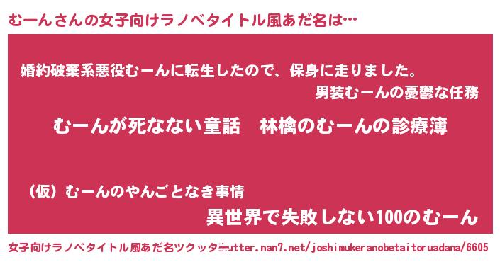 | 意味不明あだ名 | 『住所不定無職むーん(85歳)』『自称むーん』 |