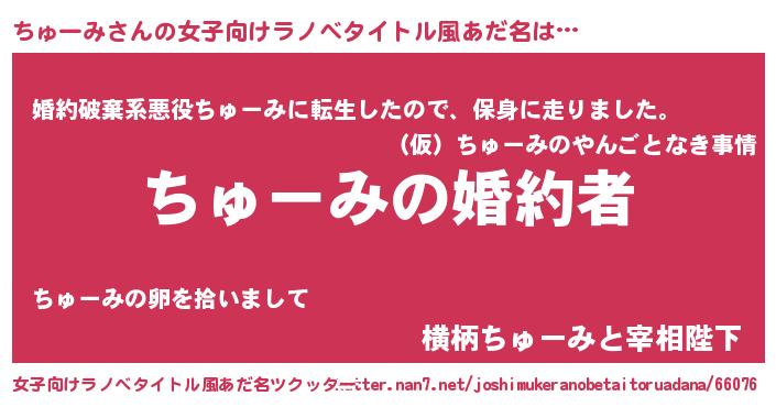 | 胡散臭い通販商品みたいなあだ名 | 『運命の人と巡り会える高級そうな壺…その名も「ちゅーみ」』 |
