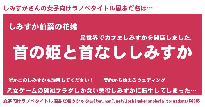 | 男性向けラノベタイトル風あだ名 | 『はたらくしみすかさま!』 |