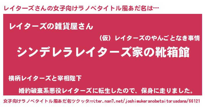 | 男性向けラノベタイトル風あだ名 | 『冴えないレイターズの育てかた』 |