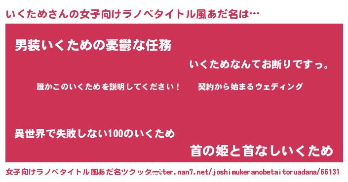 | 男性向けラノベタイトル風あだ名 | 『イクタメアートオンライン』 |