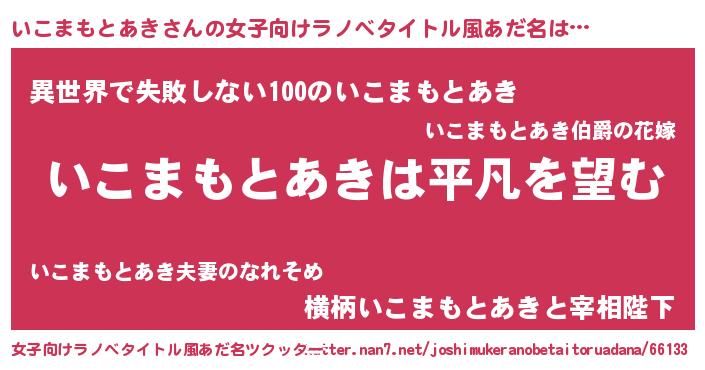 | 男性向けラノベタイトル風あだ名 | 『ダンジョンにいこまもとあきを求めるのは間違っているだろうか』 |