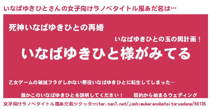 | 男性向けラノベタイトル風あだ名 | 『いなばゆきひとの嫁は女の子じゃないと思った?』 |