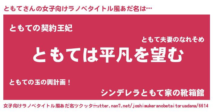 | 胡散臭い通販商品みたいなあだ名 | 『信頼と実績のネックレス…その名も「ともて」』 |