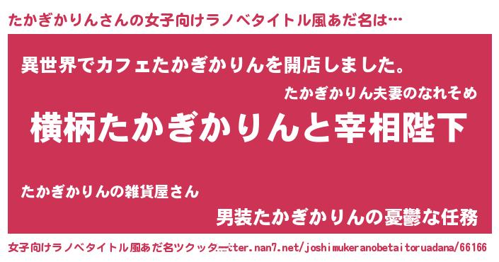 男性向けラノベタイトル風あだ名 | 『たかぎかりんに滅ぼされるだけの簡単なお仕事です』 |