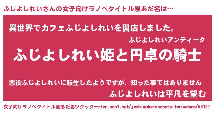 男性向けラノベタイトル風あだ名 | 『ふじよしれいの憂鬱』 |