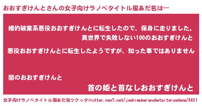 | 意味不明あだ名 | 『住所不定無職おおすぎけんと(95歳)』 |