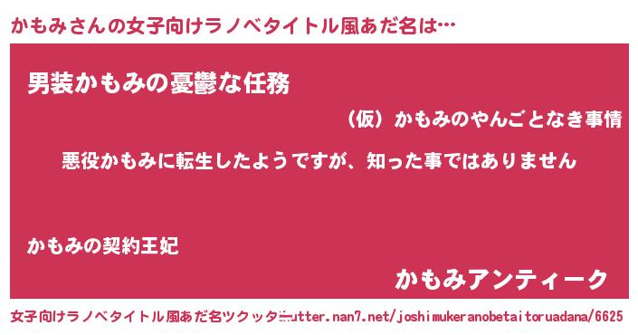 | 胡散臭い通販商品みたいなあだ名 | 『あなたにだけ特別に提供する100年もののヴィンテージワイン…その名も「かもみ」』 |