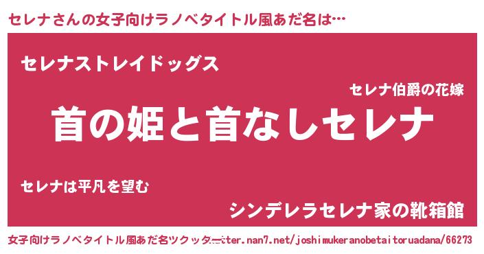 | 男性向けラノベタイトル風あだ名 | 『はたらくセレナさま!』『緋弾のセレナ』 |