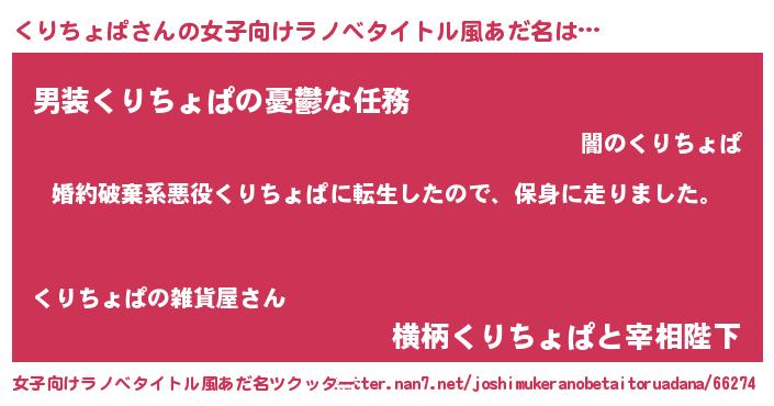 | 胡散臭い通販商品みたいなあだ名 | 『ガンによく効くアガリクス…その名も「くりちょぱ」』 |