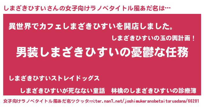 | 男性向けラノベタイトル風あだ名 | 『うちのしまざきひすいが世界を掌握している!』 |