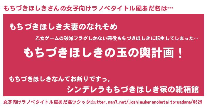 | 男性向けラノベタイトル風あだ名 | 『もちづきほしき~年齢イコール彼女いない歴の魔法使い~』 |
