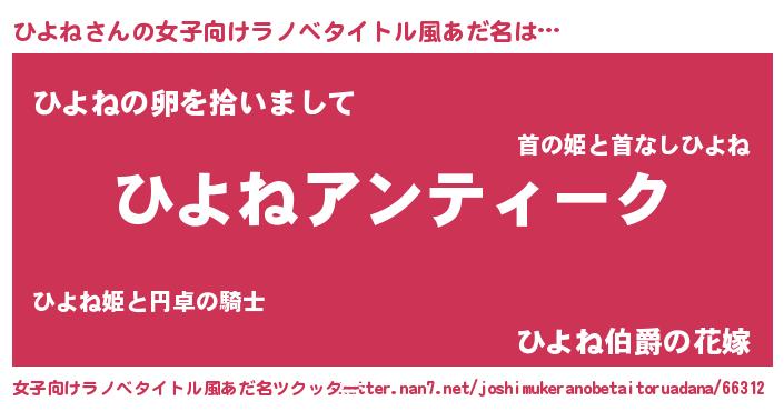 | 意味不明あだ名 | 『自称ひよね』『とにかく怪しいひよね』 |