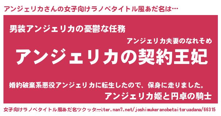 | 胡散臭い通販商品みたいなあだ名 | 『来世でも幸せになれる健康食品…その名も「アンジェリカ」』 |