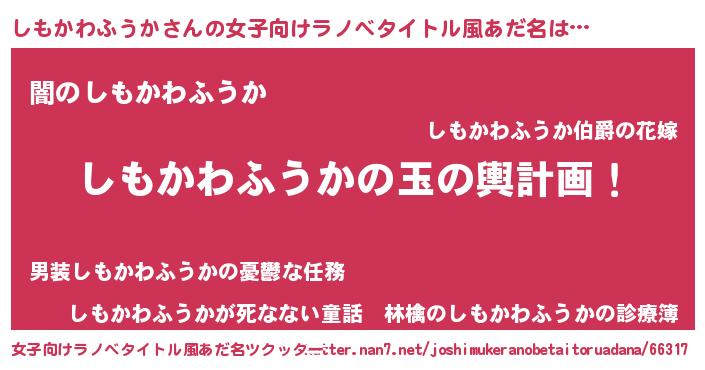 | 男性向けラノベタイトル風あだ名 | 『転生したらしもかわふうかだった件』 |