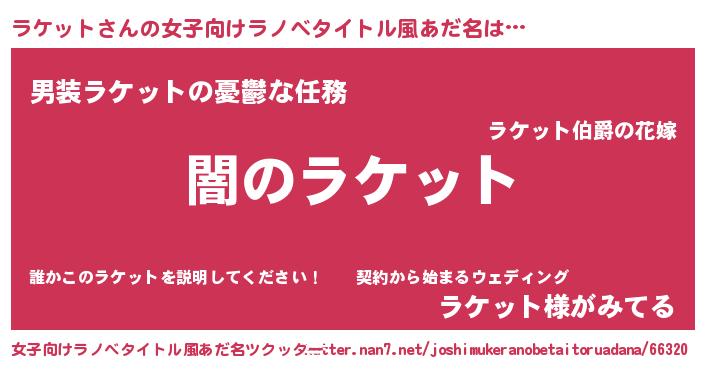 | 男性向けラノベタイトル風あだ名 | 『Re:ラケットから始める異世界生活』 |