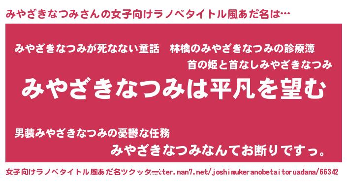| 胡散臭い通販商品みたいなあだ名 | 『信頼と実績のペンダント…その名も「みやざきなつみ」』 |