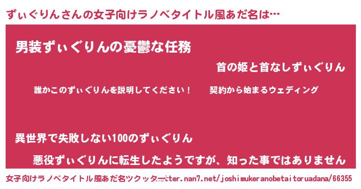 | 男性向けラノベタイトル風あだ名 | 『ズィグリンアートオンライン』 |