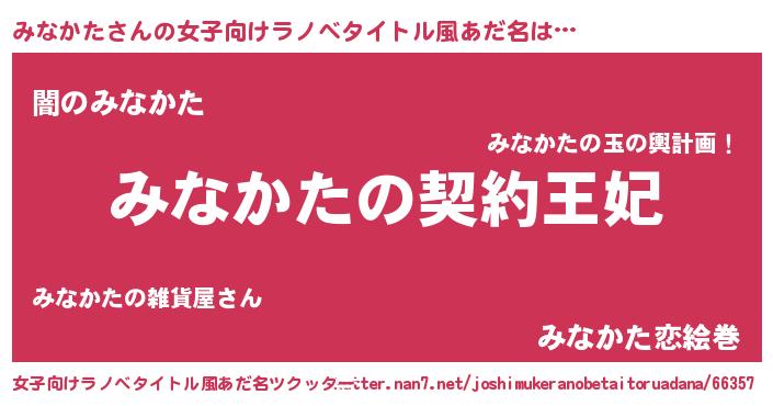 | 男性向けラノベタイトル風あだ名 | 『みなかたという概念が存在しない退屈な世界 』 |