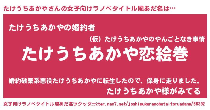 | 男性向けラノベタイトル風あだ名 | 『ノーゲーム・ノータケウチアカヤ』 |