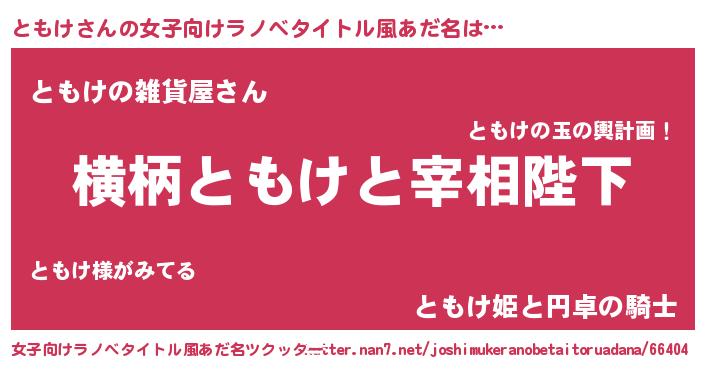 | 意味不明あだ名 | 『ともけフォーエバー』『ペロリンともけ』 |